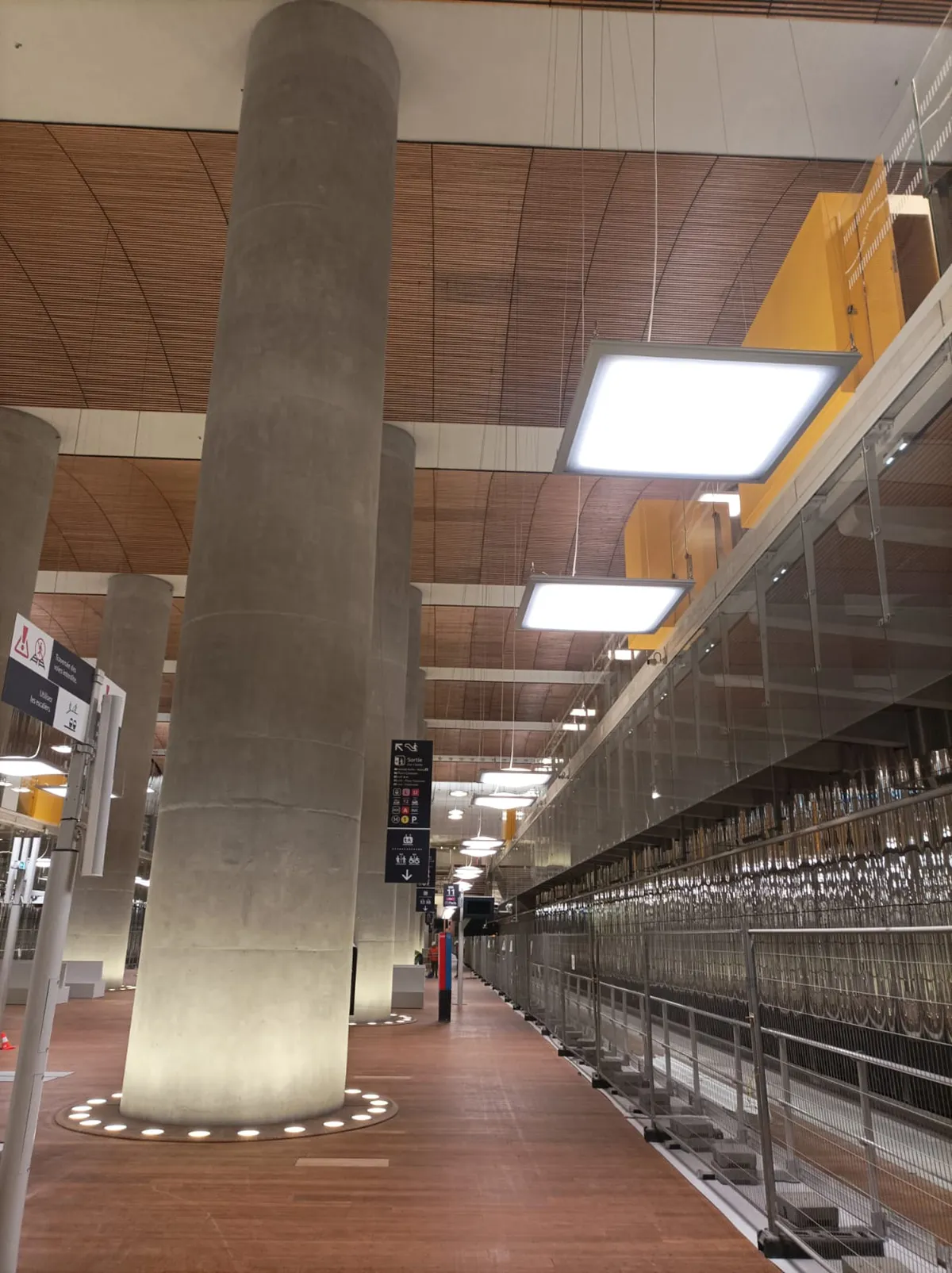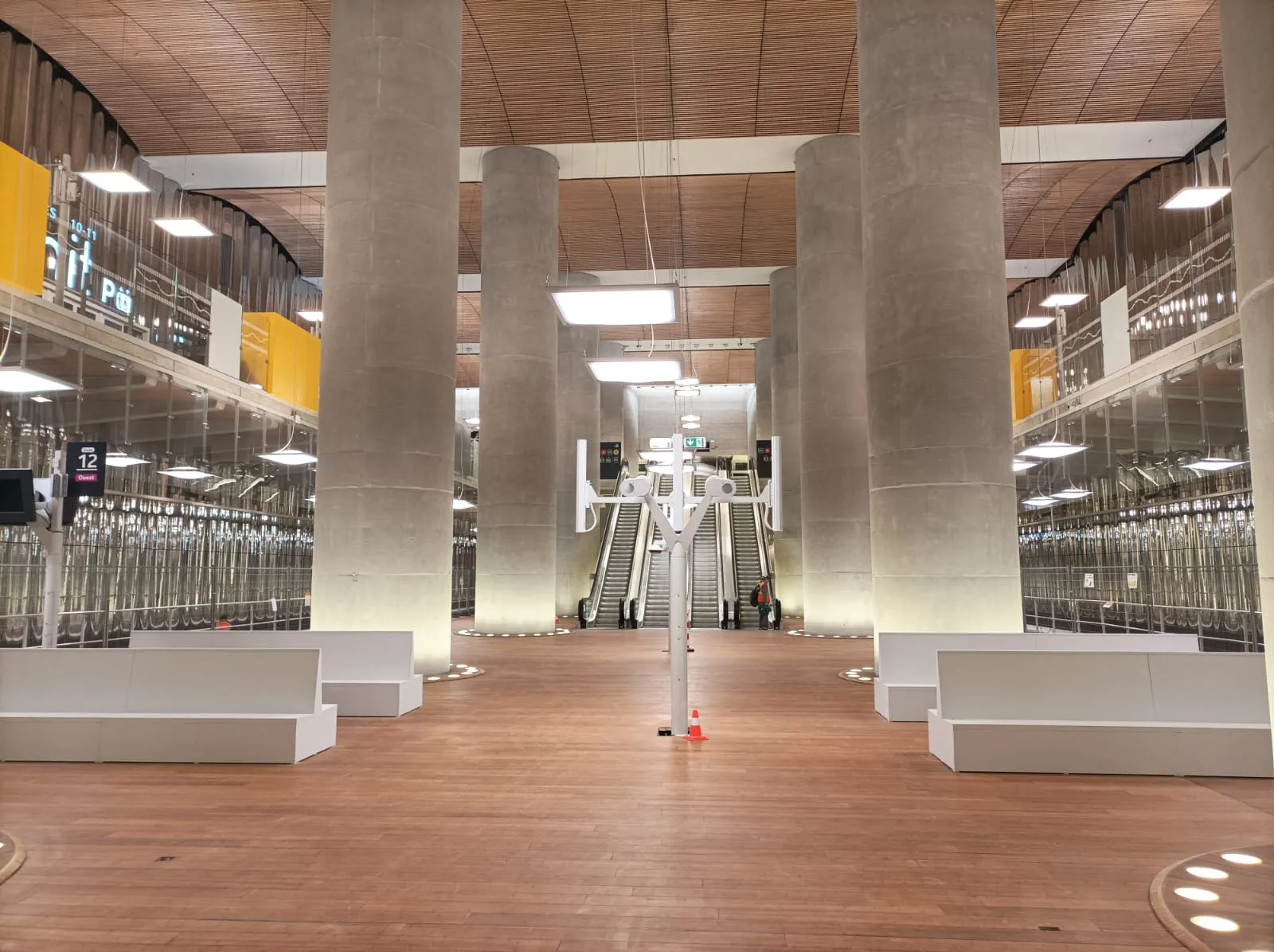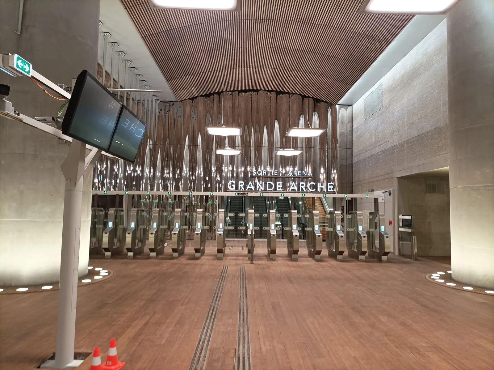 La gare de la Défense , surnommée « Cathédrale », impressionne par son quai central de 25 mètres de large et ses 15 mètres de hauteur sous le CNIT.