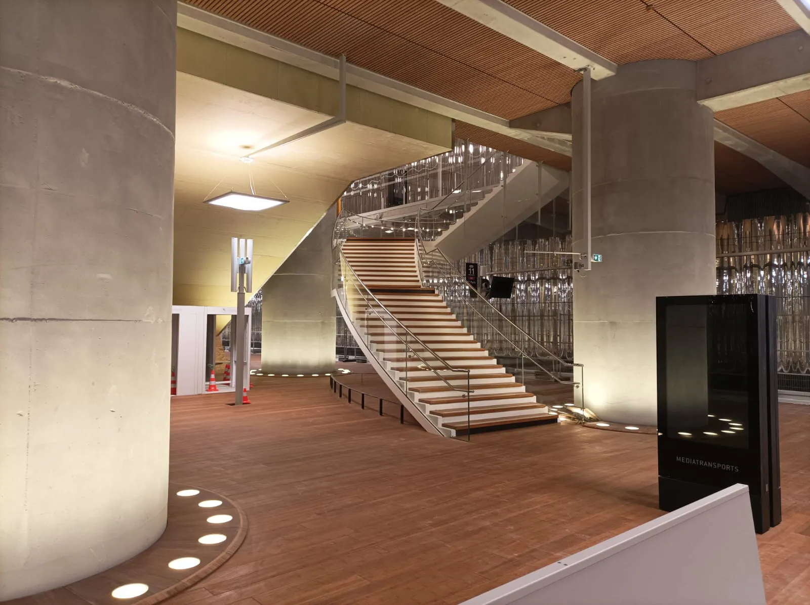 Pour ce projet, Parquetsol a réalisé la pose de 5 140 m² de parquet en bambou finition huilé, vissé sur lambourdes, ainsi que 1 700 ml de marches et contremarches en bambou sur escaliers principaux et galeries commerciales.